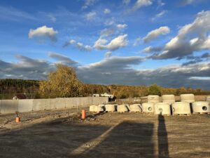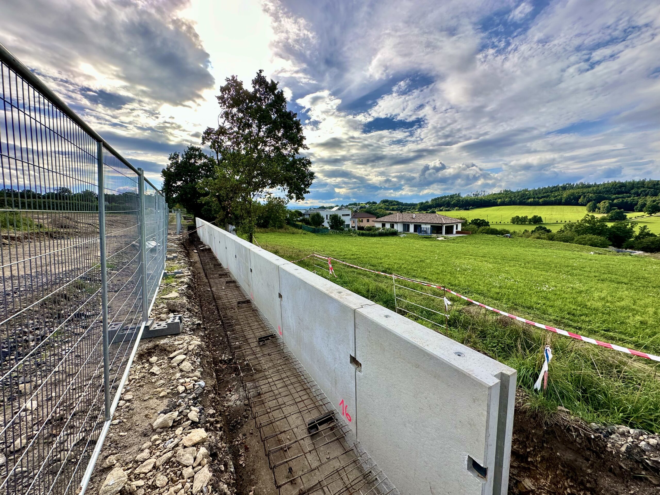Po dokončení opěrné zdi přichází na řadu výkopové práce a pokládka kanalizace.